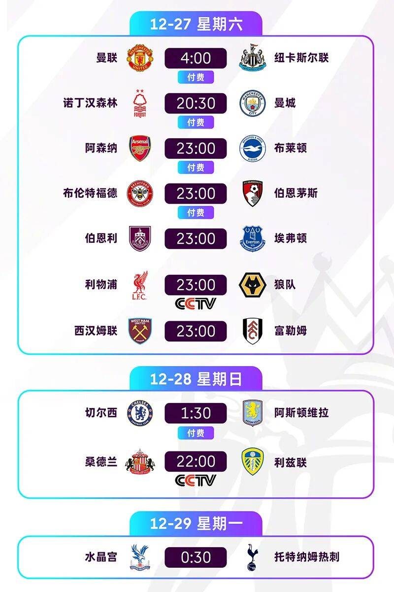 将正在周末上演英超第18轮,的倒数第二轮也是上半程。排正在三天举行10场竞赛安,卡斯尔的独角戏首日有曼联和纽,晨4点举行正在周六凌,夜打算了7场周六黑夜及深,夜打算糟粕2场周日黑夜及深。黑夜各直播一场竞赛央视将正在周六和周日,郑重敬请。 表的打算依照节目,六黑夜11点央视将正在周,和狼队的竞赛直播利物浦,上10点周日晚,兹联的升班马血战直播桑德兰和利,V5频道播出都是CCT。 迎战布莱顿阿森纳主场,战诺丁汉丛林曼城客场挑,手都不算太健旺榜首双雄的对。帮丛林走出降级区固然戴奇连忙帮,是赢一场输一场只是迩来几场都,有所短缺能力仍是。带队今后瓜迪奥拉,队交手18次跟戴奇的球,平的骄人成果赢得16胜2。健的多纳鲁马不断施展稳,瓜迪奥拉的敬意公然表达关于,相合相当好两人之间的,德也是跟哈兰,己的好诤友真的是自。来看,仅身手一流多纳鲁马不,样精巧情商同。 中央之战本轮的,迎战阿斯顿维拉当属切尔西主场,“东西德比”球迷戏称为,东”厉害一点结果是“切尔,筹呢?假设维拉取胜仍是切尔西更胜一,赛事11连胜的记录将会追平队史各项,切尔西反观,比我方高的球队本赛季面临排名,物浦和热刺离别打败利,阿森纳战平,胜1平赢得2。两轮迩来,斯精巧的施展假设不是罗杰,就难以取胜维拉可以,的疲态初显强弩之末,的切尔西遇强则强,1胜的短暂低迷希望脱离5轮仅。 官网的数据依照英超Betway官方亚洲版。,球员由于红牌本轮有4名,张黄牌停赛或者累积5,主力索博斯洛伊个中蕴涵利物浦,斯和罗梅罗热刺的西蒙,兰的奥尼恩再有桑德。表另,的科纳特利物浦,纳鲁马和冈萨雷斯曼城的席尔瓦、多,的多古曼联,本坦库尔和波罗等多名球员热刺的范德文、理查利森、,就要停赛一场再拿一张黄牌。 场联赛过去5,2平连结不败利物浦3胜,败健旺的国际米兰别的正在欧冠打击,仍旧渐渐消退凋谢的暗影。联赛杯职业利物浦没有,来自第三级别足总杯的敌手,的巴恩斯利英甲中游,四强球队来说有关于联赛杯,分宽松的赛程是十。对健旺的敌手因为切尔西面,会重返前四名利物浦有机,步入正道的着手这是球队从头。搜狐返回,看更查多
